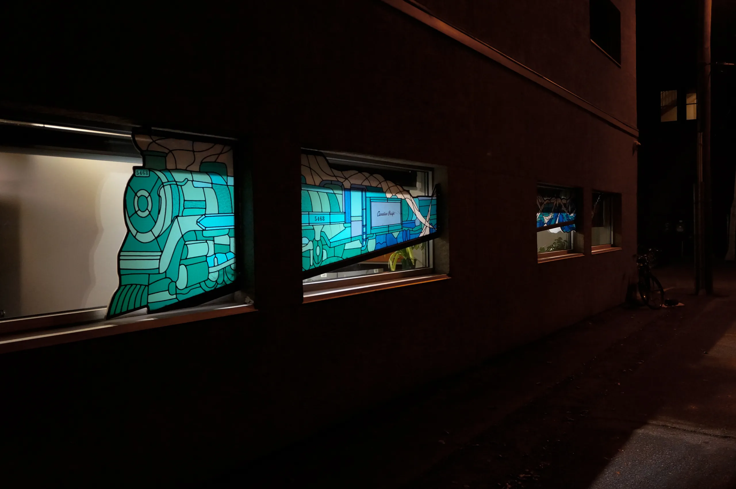 ‘Canadian Pacific’ is an original work by stained glass artist Kelly Hutcheson. The inspiration behind this large-scale piece stems from Revelstoke’s deep connections to the railway. This large-scale Art Alleries commission challenged Hutcheson, known locally for her smaller intricate pieces of bears and mountainscapes, to create something on a much larger scale built to withstand the elements. In this film we glimpse the fascinating process of creating an epic stained glass work from inception through to completion.